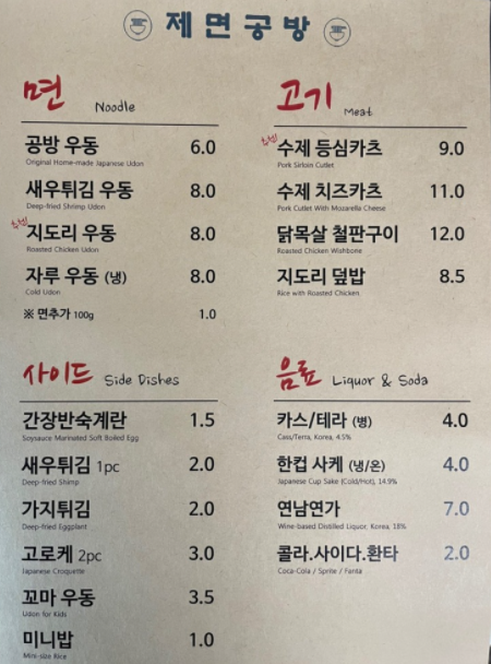 메뉴 가격