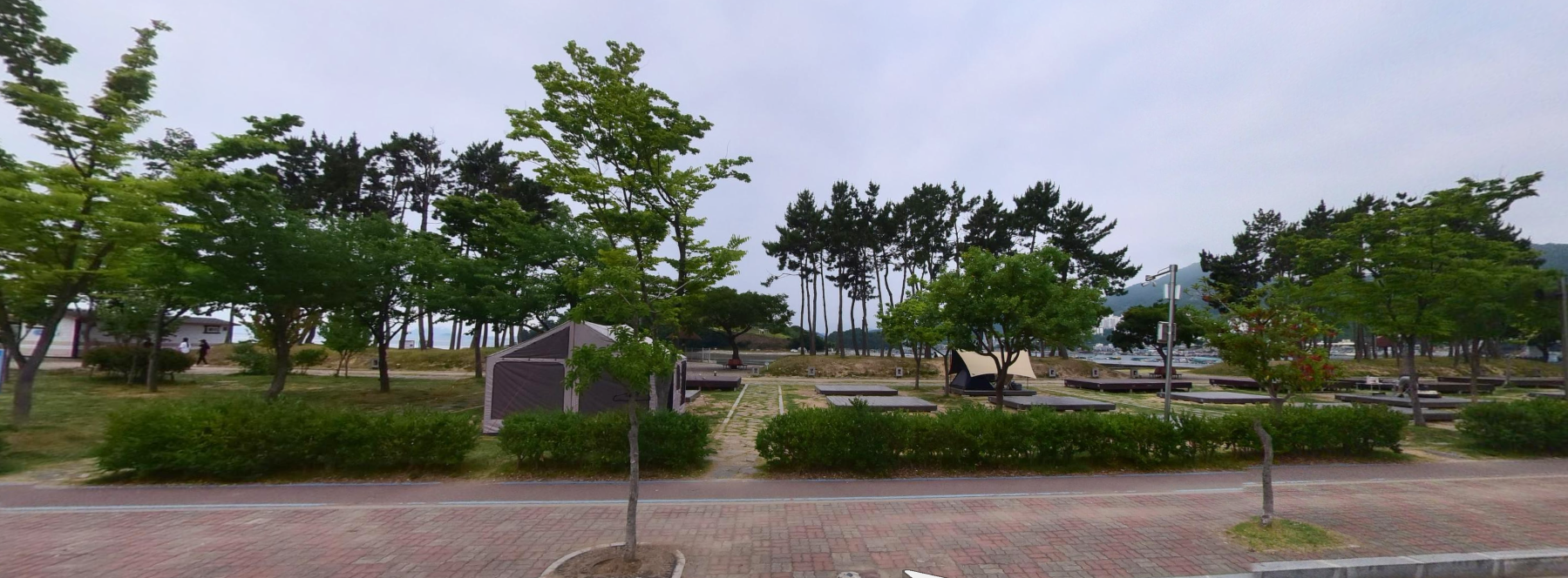 육지부는 송림, 산책로, 야영장, 화장실, 샤워실, 음수대 등