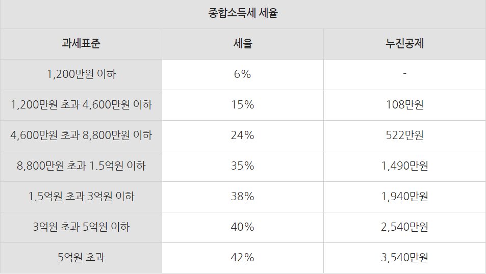 6~42%의 누진세율이 적용됩니다.