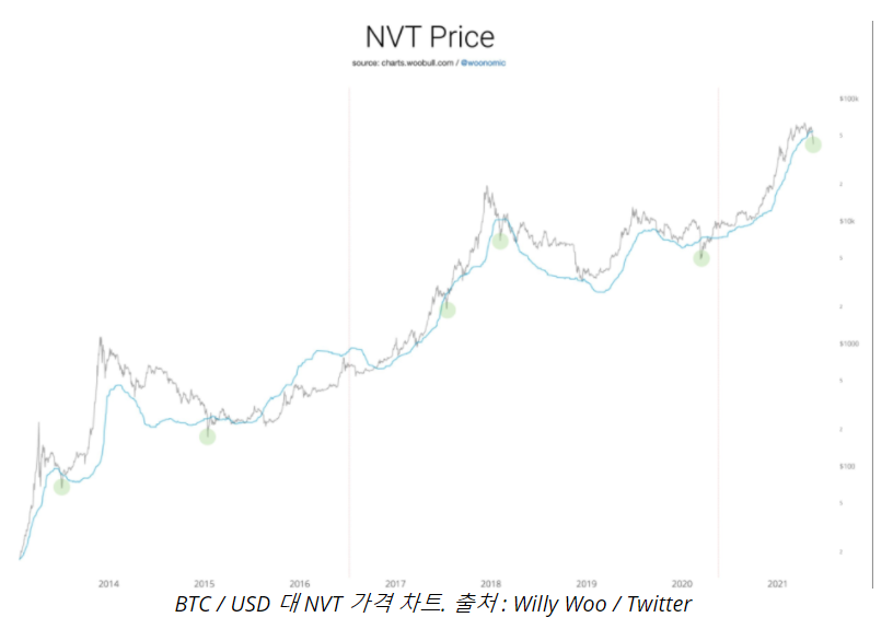 비트 코인이 NVT 가격 아래로 떨어짐에 따라